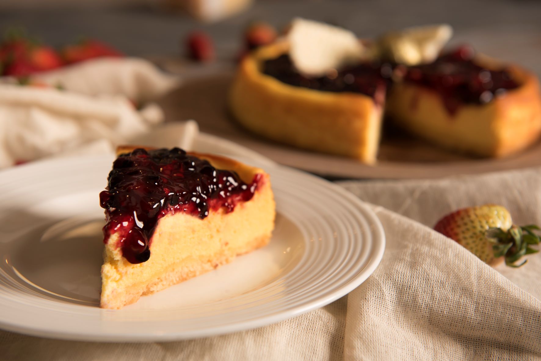 Este postre combina la frescura y acidez de los frutos rojos con la cremosidad única del cheesecake y una base de galleta que aporta un toque crujiente.
