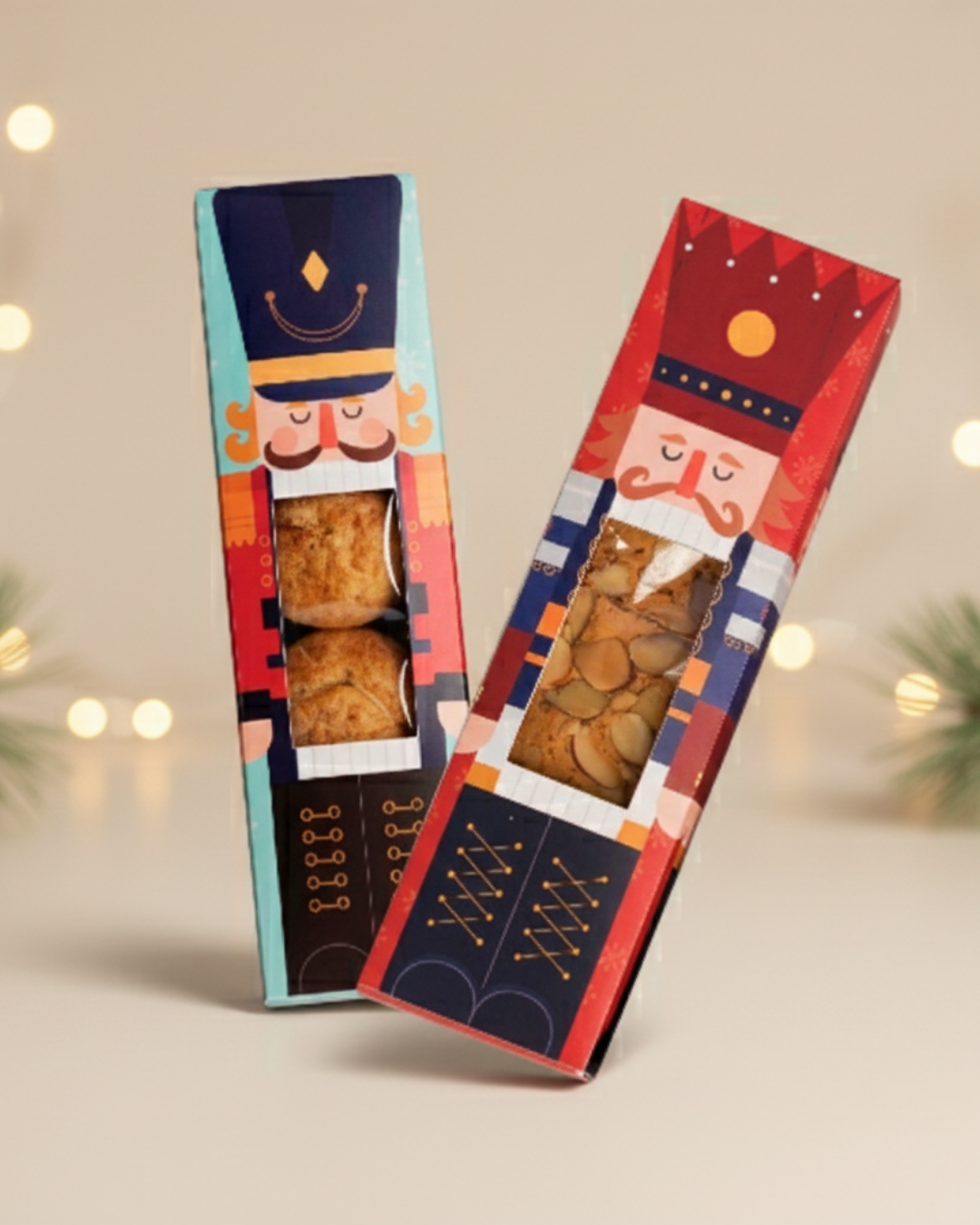 La pareja perfecta para regalar y endulzar. lleva el duo cascanueces con 1 caja de brownies cascanueces y caja de galletas cascanueces. ¡perfecto para navidad y fin de año.!.