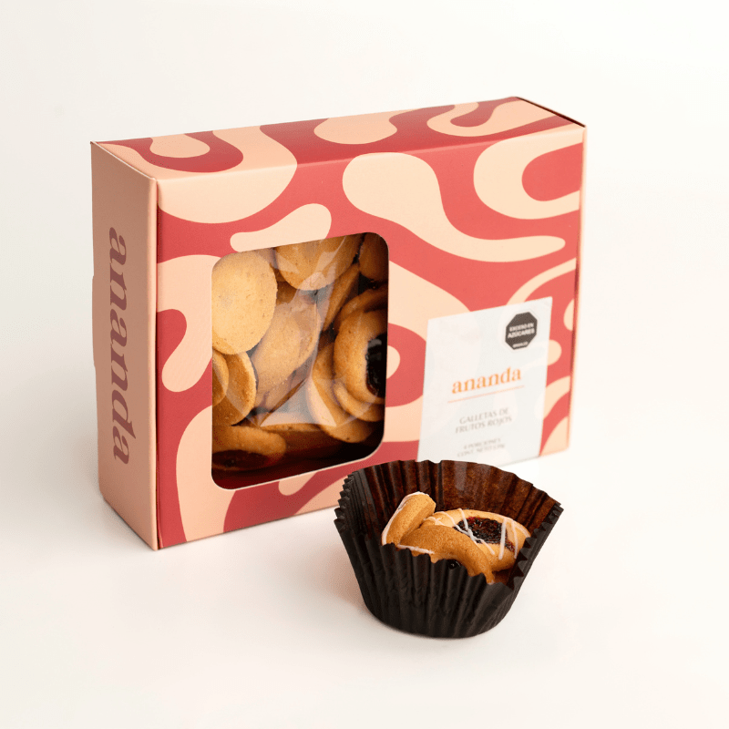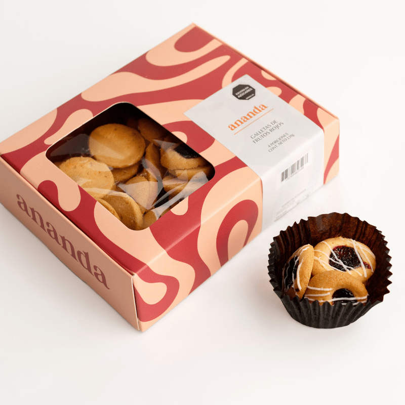 Suaves galletas de mantequilla, delicadamente horneadas y realzadas con un toque de mermelada de frutos rojos. un equilibrio perfecto entre dulzura y frescura que te encantará.