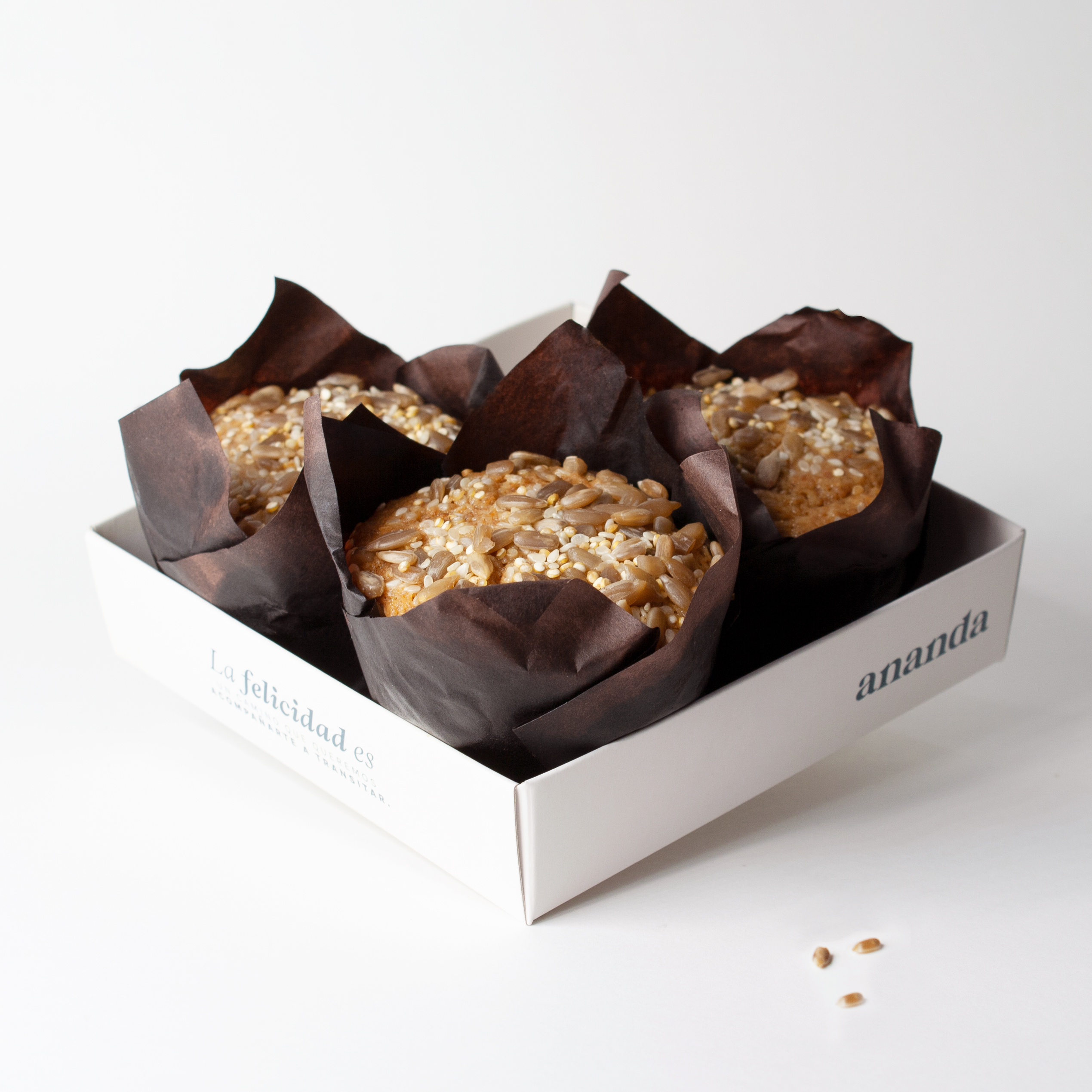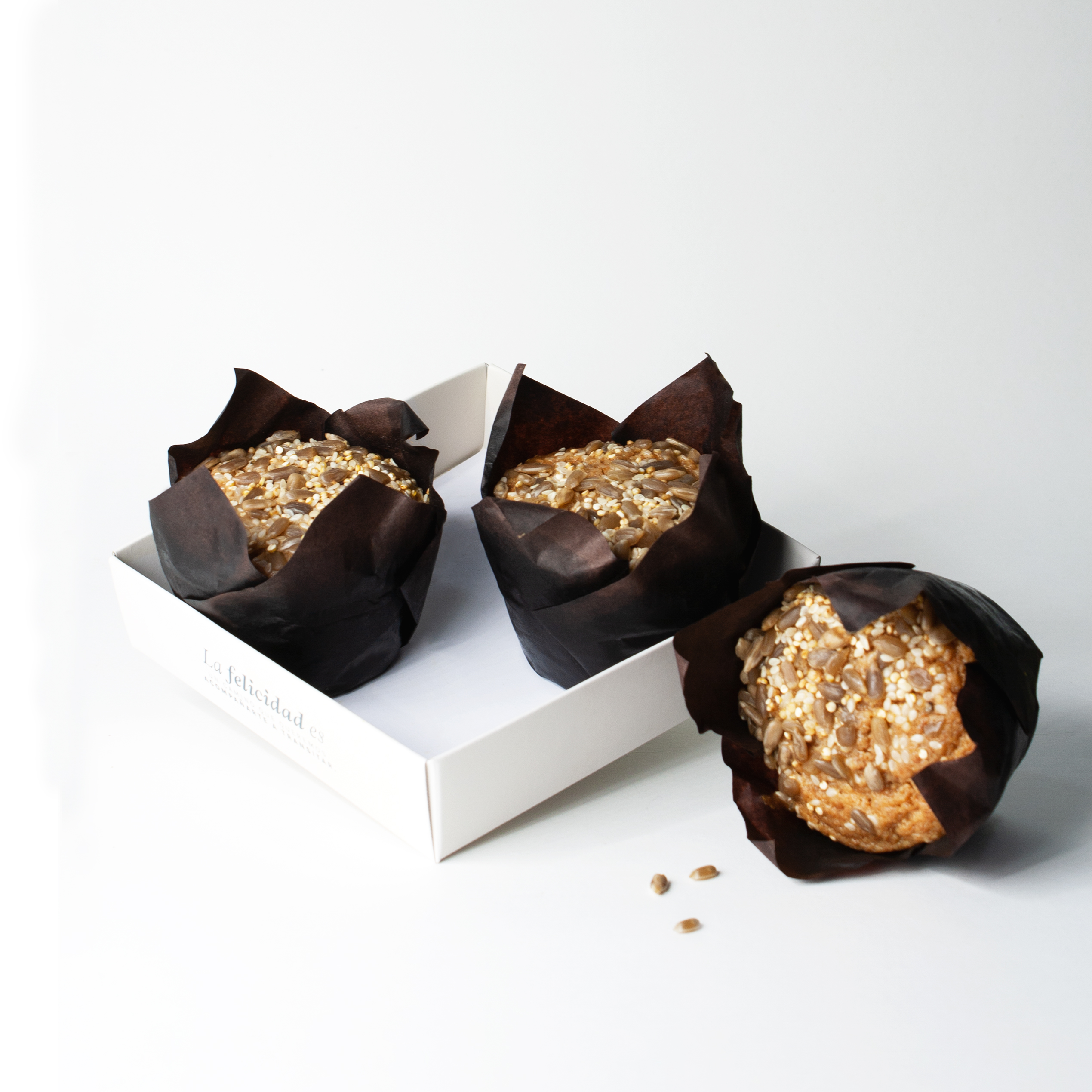 Disfruta de un muffin delicioso y saludable elaborado con harina integral enriquecida y un mix de semillas de girasol, quinua y ajonjolí.