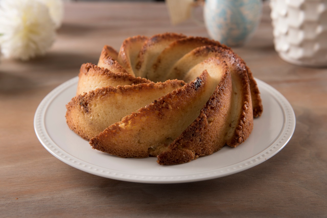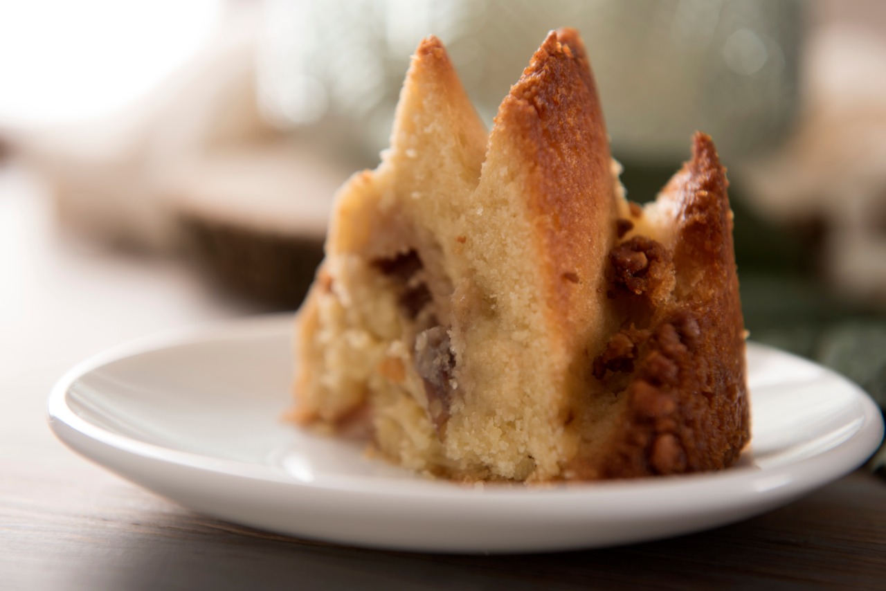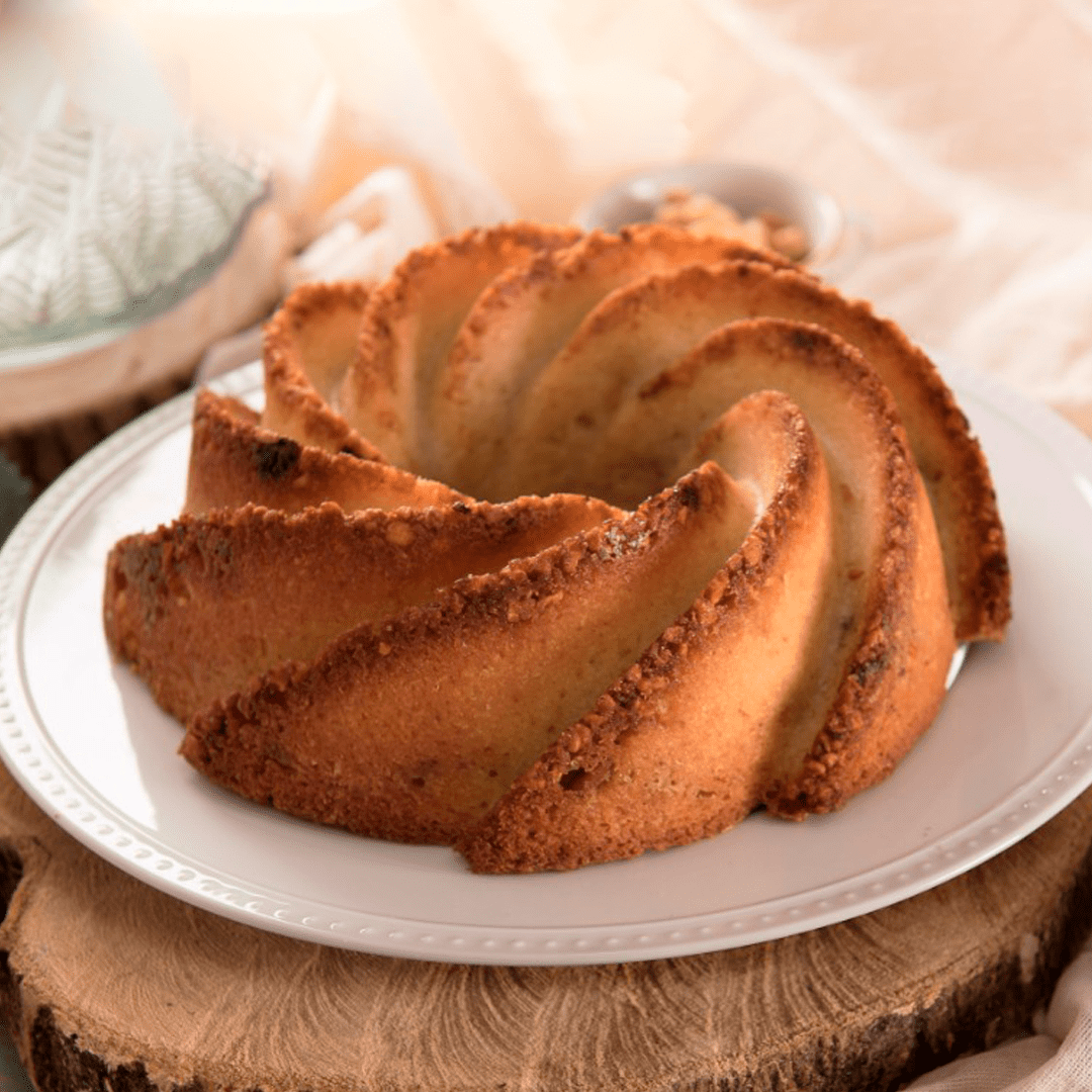 Suave torta con relleno de nueces y pecanas. Ideal para acompañar con una tasa de café. De 8 a 10 porciones.