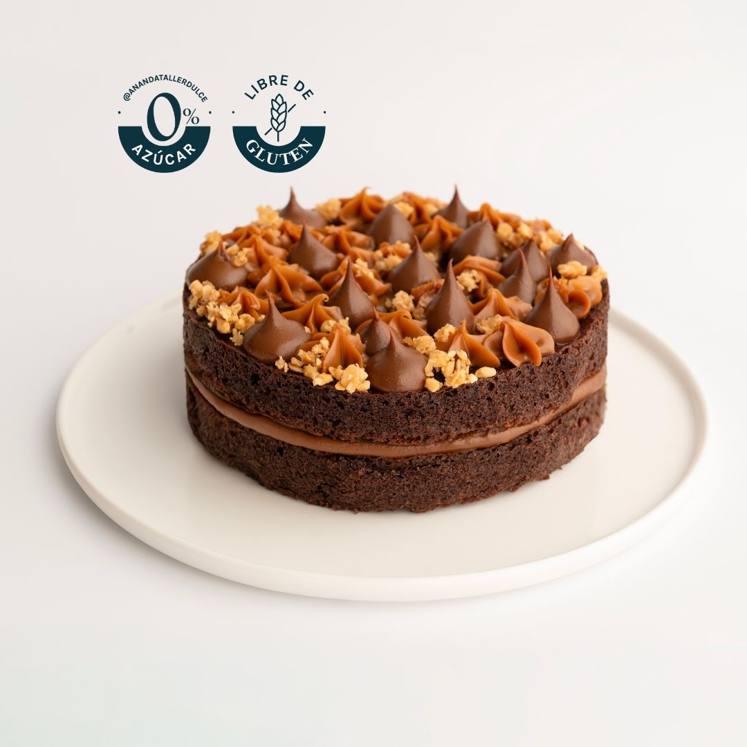 Torta húmeda de chocolate y yogurt griego, con una capa intensa de ganache de chocolate y arequipe.