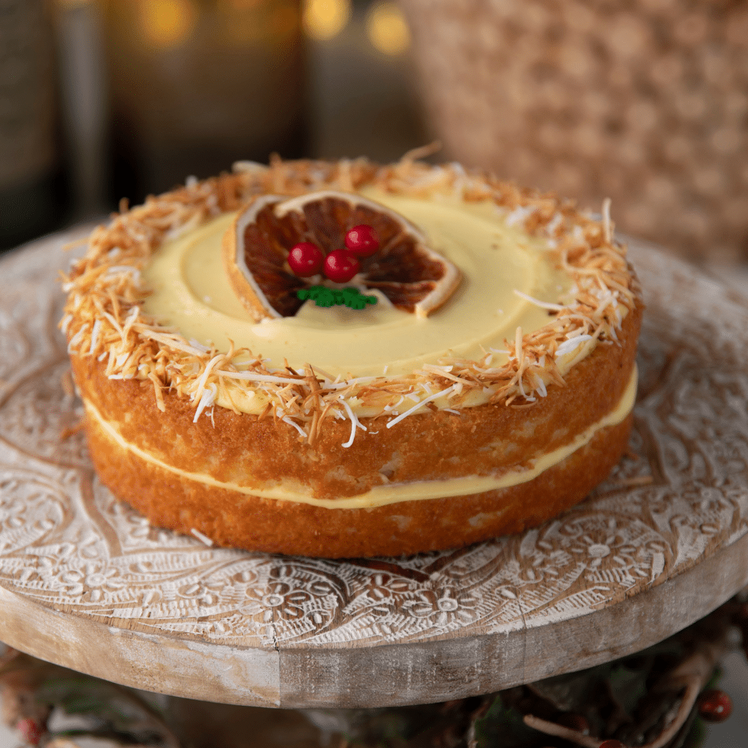 Suave y húmeda torta de coco con cremoso de limón, sin azúcar añadida.