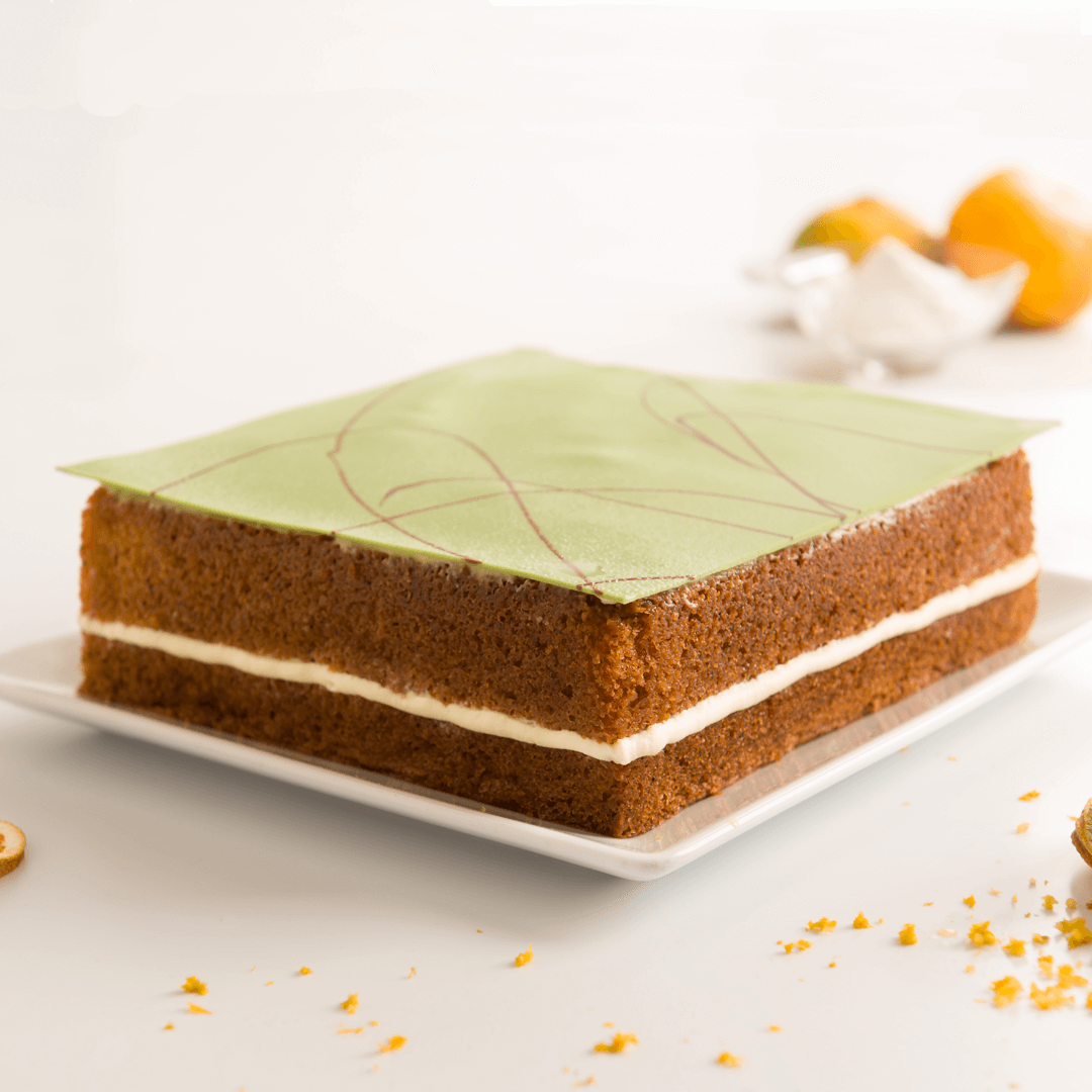 Deliciosa torta de naranja con semillas de amapola y cremoso de queso.